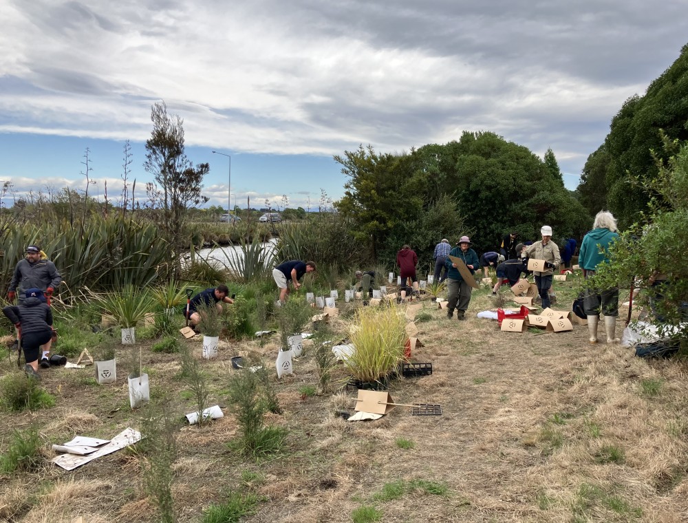 This was our big planting day for the year, in combination with Trees for Canterbury (TFC) and Christchurch City Council (CCC). Following on from last October’s event we were again re-vegetating red zone land on the eastern shore of Lake Kate Sheppard. We had 1065 plants from CCC nursery and 675 plants from TFC, with plants having taken up to 3 years to mature in their pots.